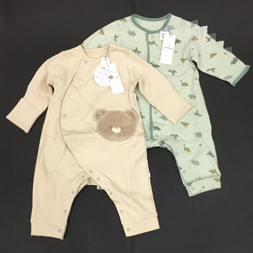 > 新品同様 モクモフ サイズ 80 622-475224 アニマルポシェット 長袖 ロンパース 他 タグ付き ベビー 計2点 セット