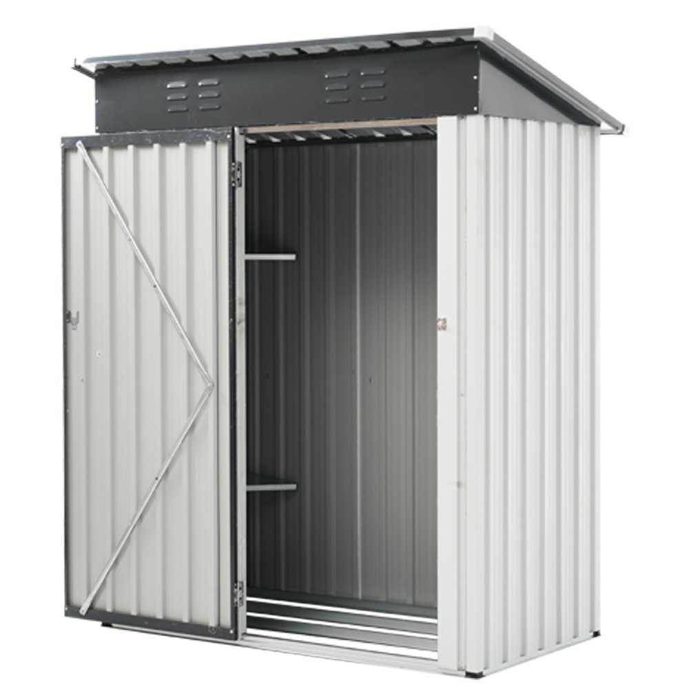 - 【ブラック+ホワイト 三角棚あり 補強フレーム付き】物置 屋外 大型 倉庫 大型物置 戸外収納庫 物置 防水/耐侯/鍵付き 収納可能 ガーデン
