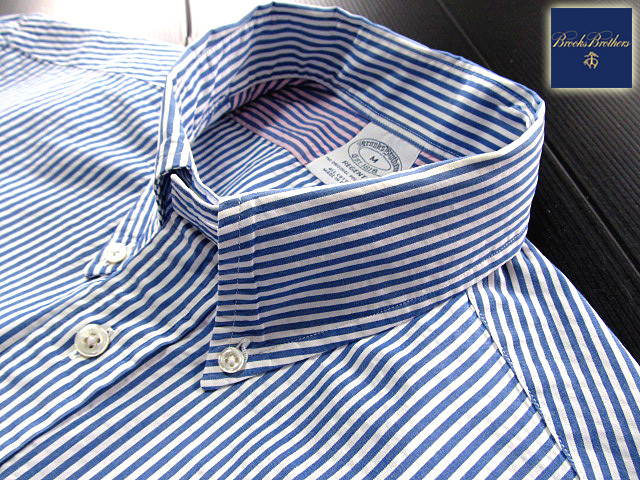 > ★美品 ブルックスブラザーズ BROOKS BROTHERS ボタンダウンシャツ 長袖 Mサイズ 希少品 クールストライプ ブルー×ホワイト