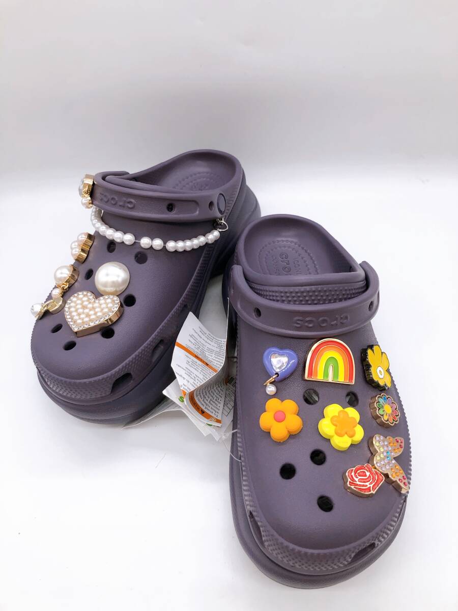 > 【29949】★未使用★CROCS クロックス bae clog 24㎝ 小物付 おしゃれ 人気ブランド 厚底 Y2K ビーチ チャーム アクセサリー付き