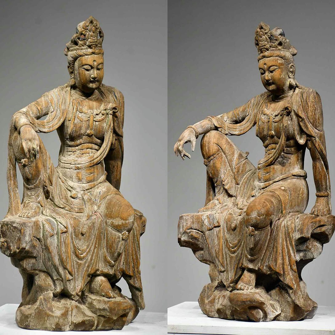 - ◆羽彰・古美術◆Y0088明時代 楠木木彫自在観音像 楠木細密彫 細工彫刻★仏教古美術★仏像★細密細工★廃寺旧蔵★廃寺買出品