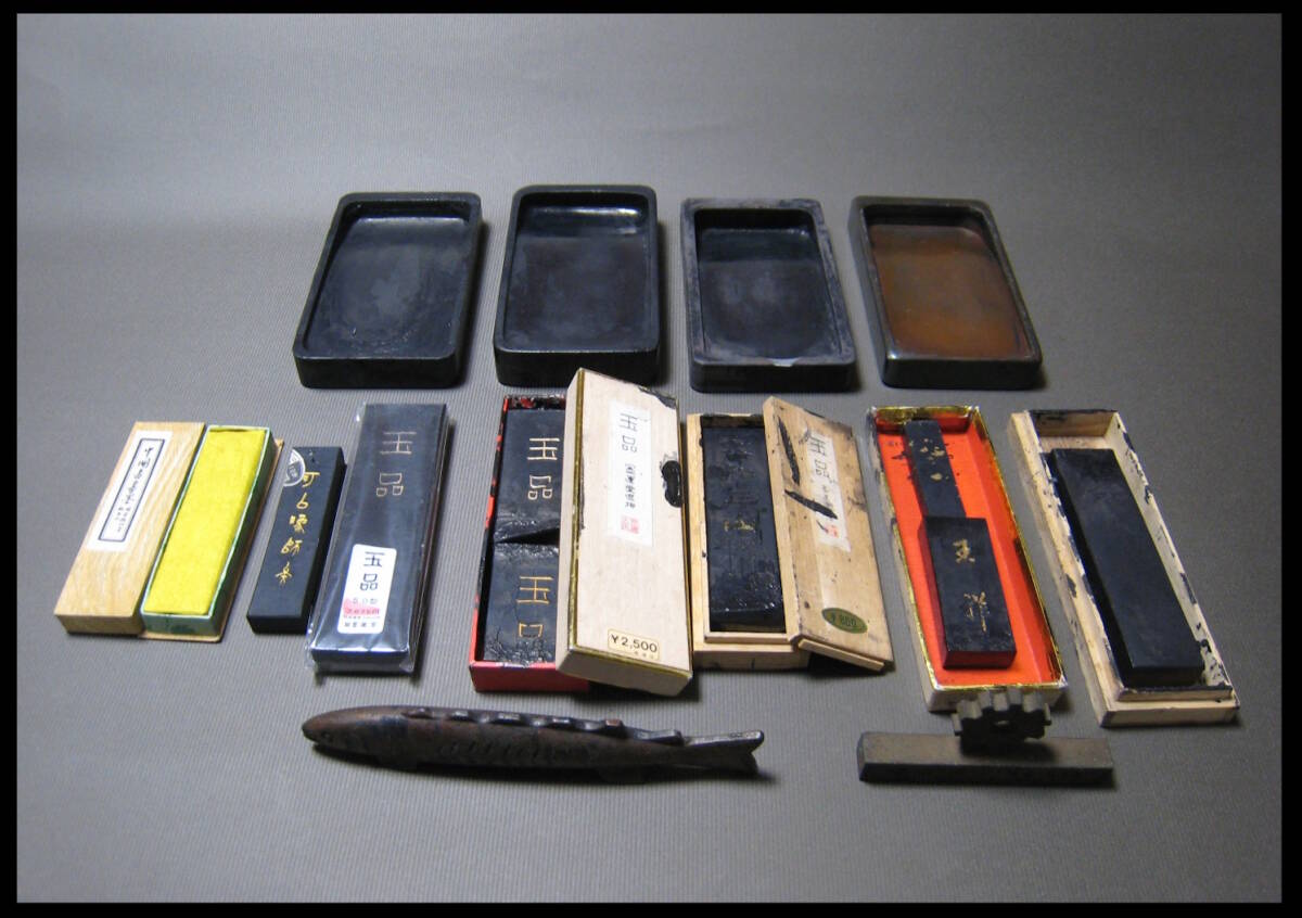 - 墨 硯 文鎮 書道具 魚 彫金文鎮 墨運堂 玉品 中国製墨 龍浮?硯 書