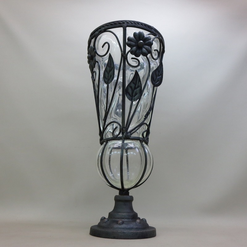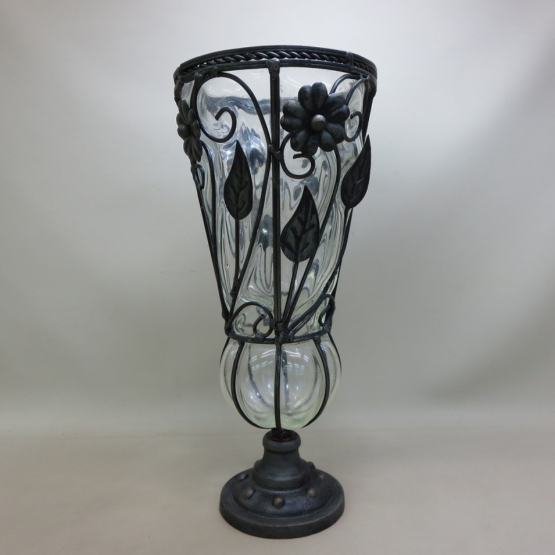 - ◇アイアン ガラス フラワーベース ハンドメイド 花瓶 高33cm◇アンティーク花器◇10