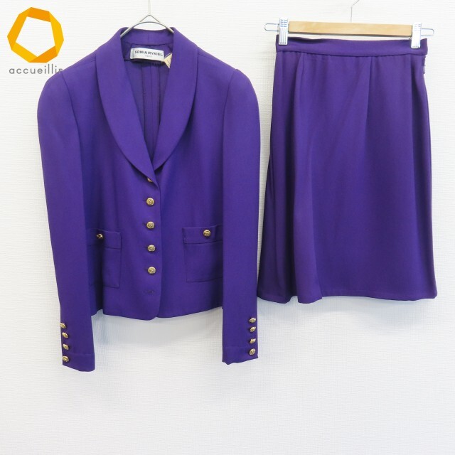 > フランス製 ソニアリキエル SONIARYKIEL ヴィンテージ セットアップ スカート 膝丈 金ボタン [a979152]
