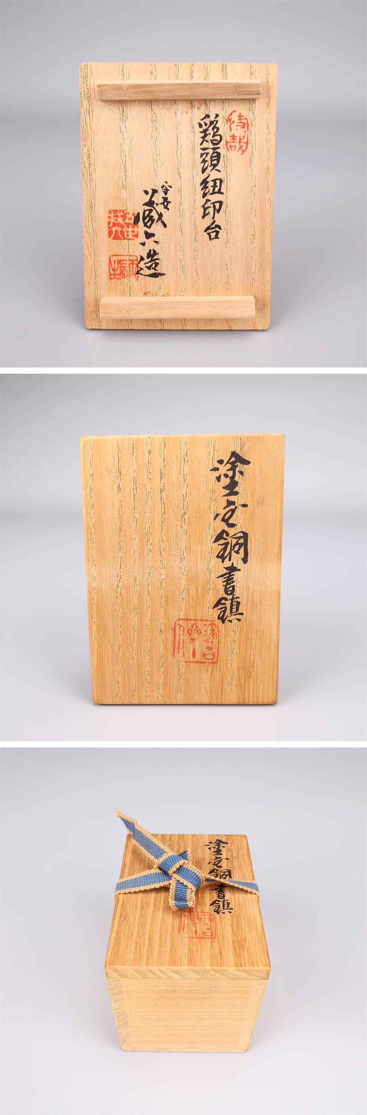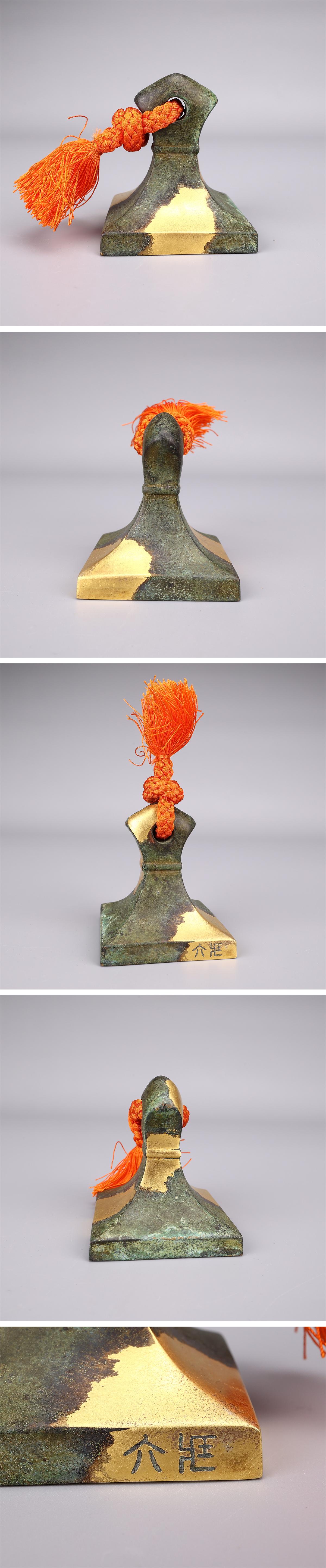 【吉】BA846 【四世秦蔵六造】 古代鶏頭紐印式 塗金銅書鎮 重292g/共箱付 美品I!拍卖