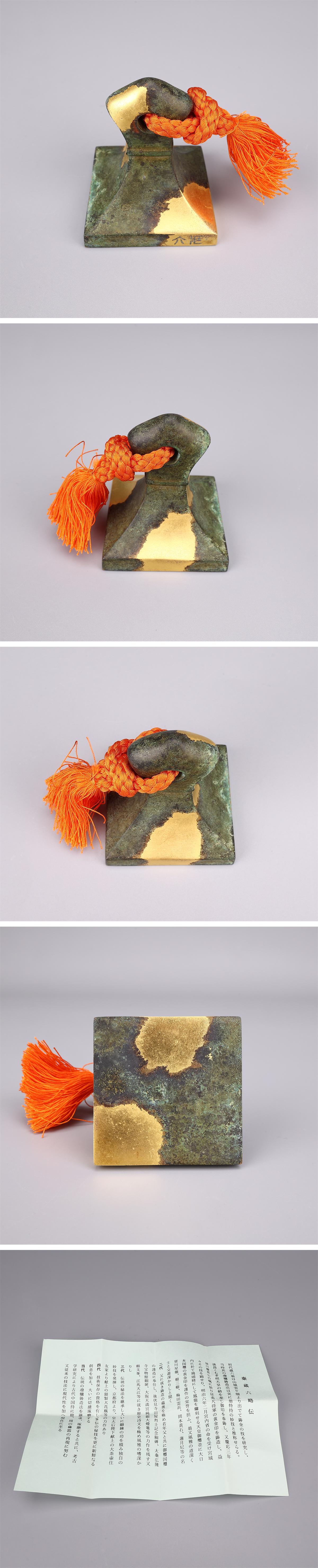 【吉】BA846 【四世秦蔵六造】 古代鶏頭紐印式 塗金銅書鎮 重292g/共箱付 美品I!