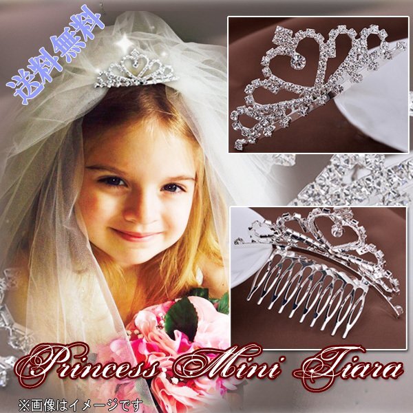 > 送料無料 プリンセス ミニ ホワイト ハートティアラ / お姫様 ヘアアクセサリー フォーマル ウェディング 発表会 結婚式 子供用 姫
