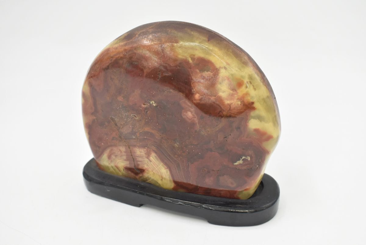 - (1297S 1126H2) 1円~ 鑑賞石 飾石 天然石 重量約1.07kg 木製台座付 瑪瑙 メノウ 原石 自然石 置物 オブジェ