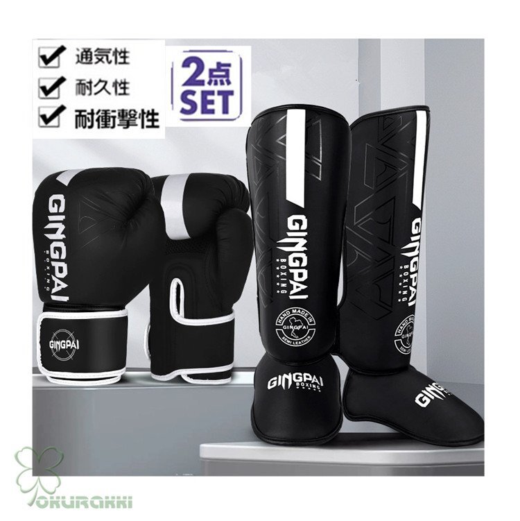 - 【2点セット】ボクシンググローブ+シンガード 格闘技 武道 空手 キックボクシング 総合格闘 防具 プロテクター