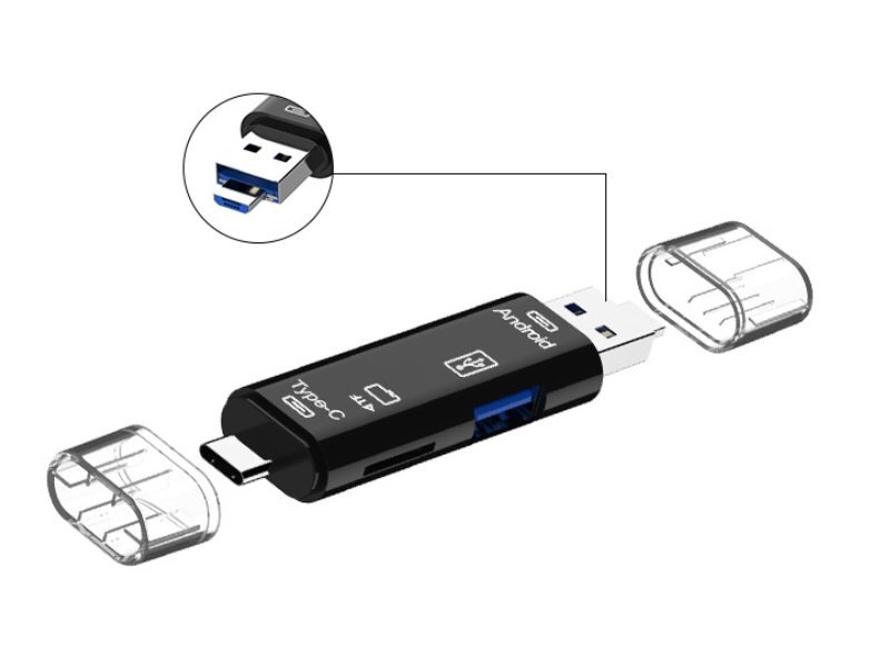- 【vaps_3】USBマルチカードリーダー USB2.0 microUSB TypeC対応 伸縮変形タイプ 《ブラック》 送込