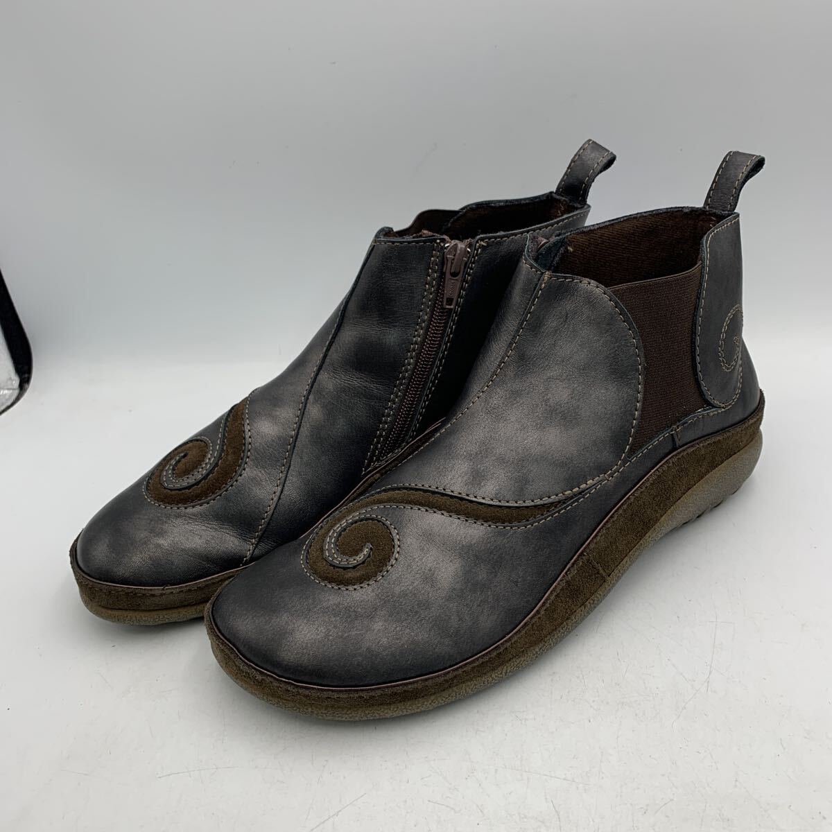 > W908 NAOT ナオト コンフォートシューズ レディース ショートブーツ 40 約 25cm ネイビー ブラウン サイドジップ