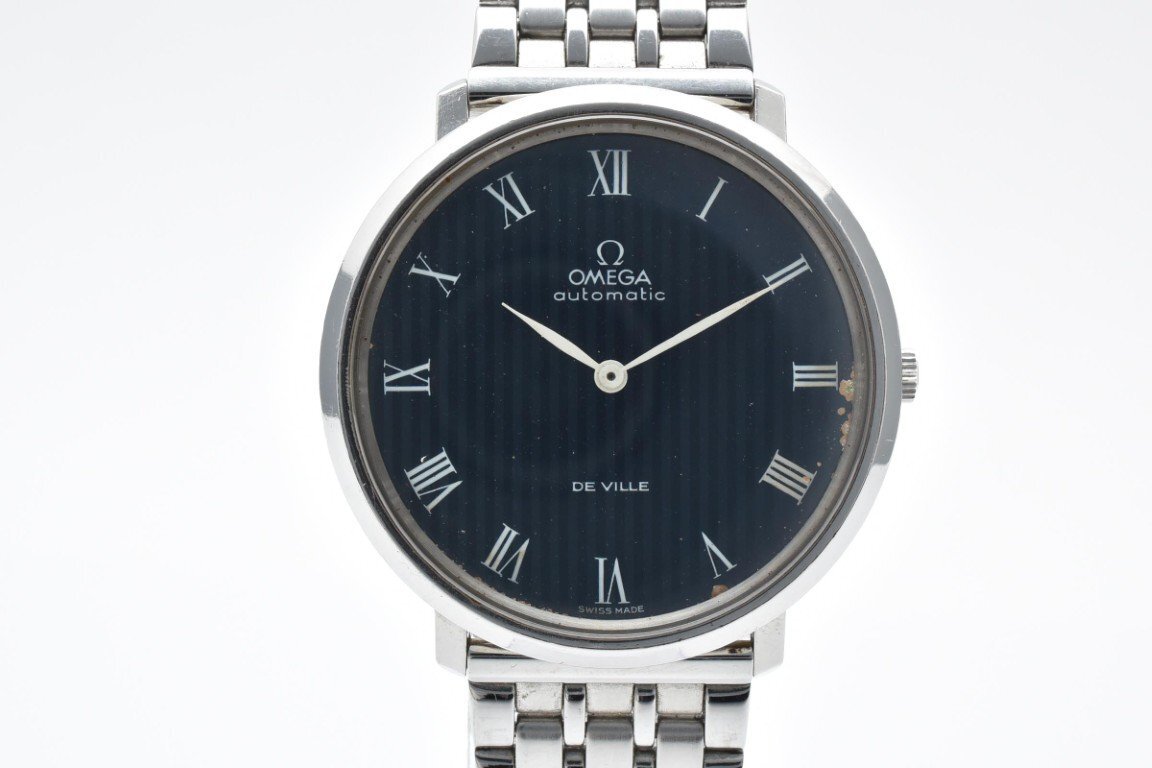 > オメガ デビル 自動巻き ラウンド シルバー ブルー ローマン 2針 ステンレス AUTOMATIC メンズ 腕時計 OMEGA DE VILLE