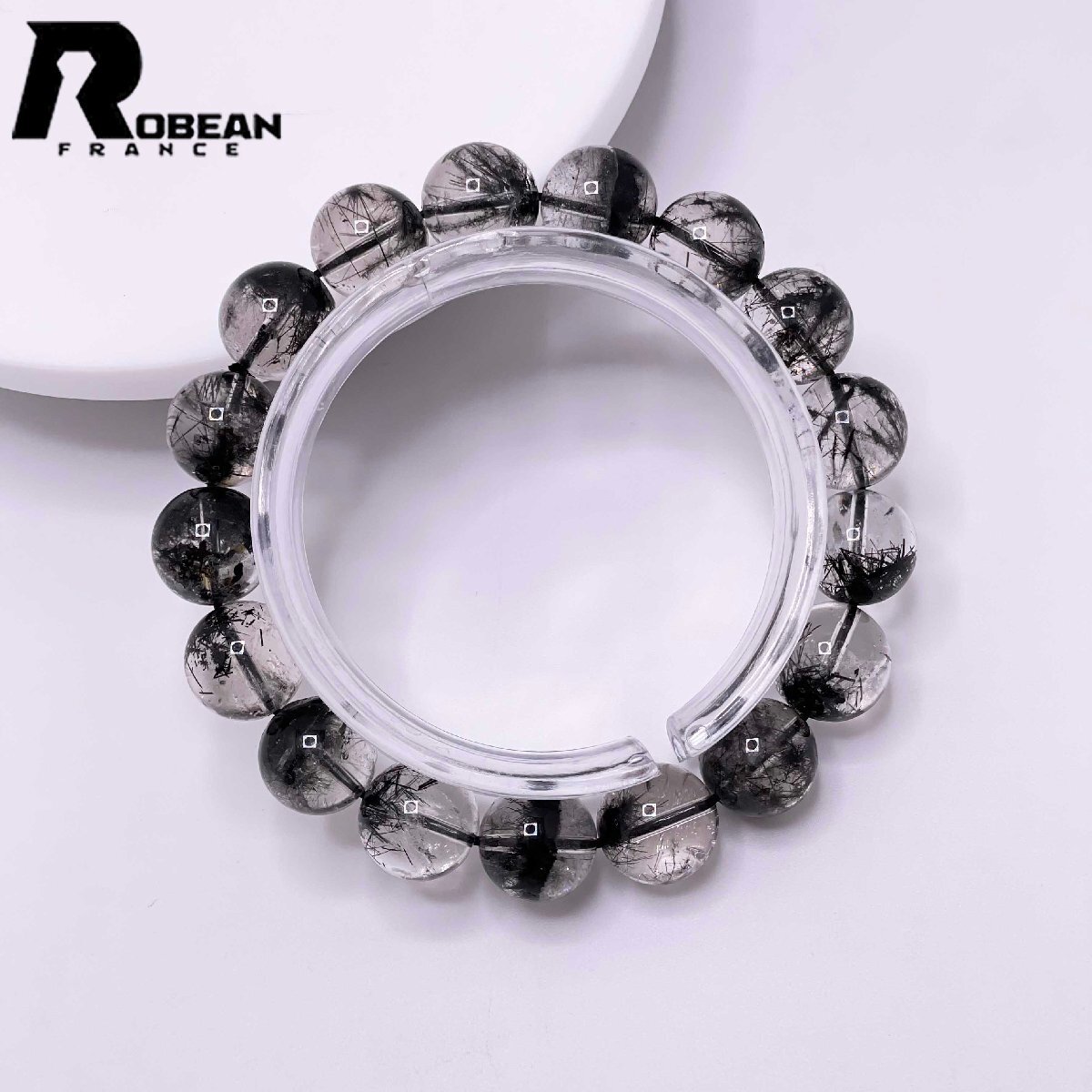 - 綺麗 EU製 定価21万円★ROBEAN・ブラックルチルクォーツ★黒針水晶 ブレスレット パワーストーン 金運 天然石 原石 12.3-12.6mm M0414927