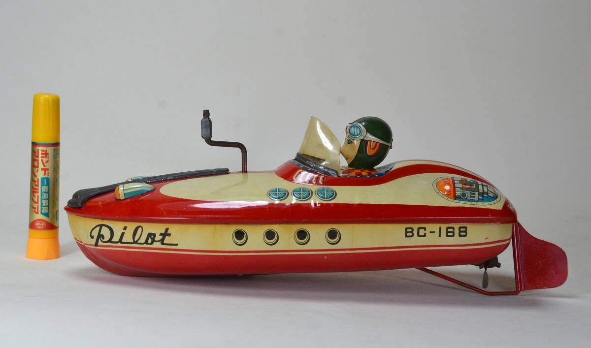 - 古いブリキのモーターボート PILOT BCー168 バンダイの前身 萬代屋製 当時物 昭和レトロ 美品 稼働