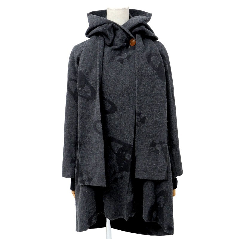 - TJ7266#ヴィヴィアンウエストウッドレッドレーベル*変形ウールコート*オーブ柄*袖口リブ*Vivienne Westwood*チャコール系*サイズ2