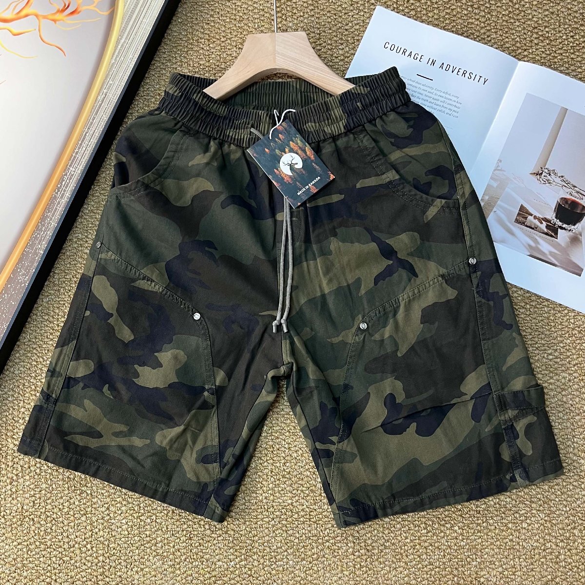 - ショートパンツ カナダ製造 個性 コットン100% 柔らか 迷彩柄 カッコイイ 半ズボン イージーパンツ 短パン アウトドア メンズ 夏用 SIZE:L
