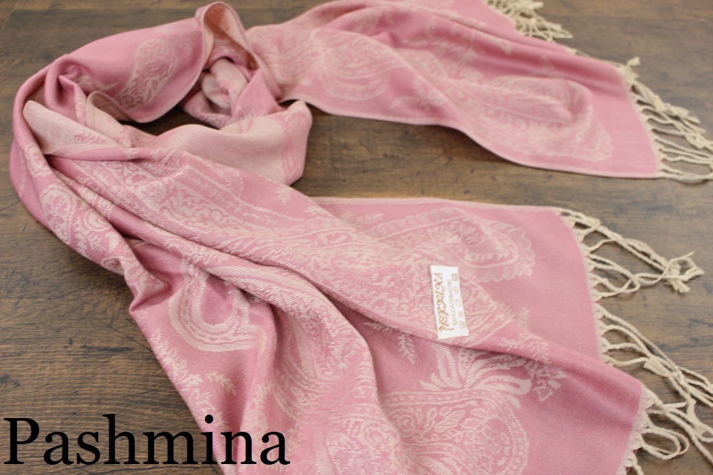 > 新品【パシュミナ Pashmina】ペイズリー×プラント柄 ピンク PINK 大判 ストール カシミア100% Cashmere