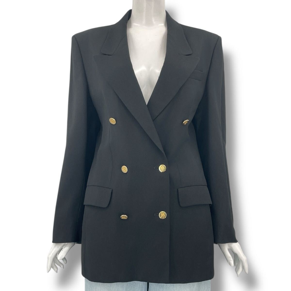 > 極美品 BURBERRYS バーバリーズ ジャケット ブラック 金ボタン 騎士ロゴ ウール ブラック AH12 1128-14
