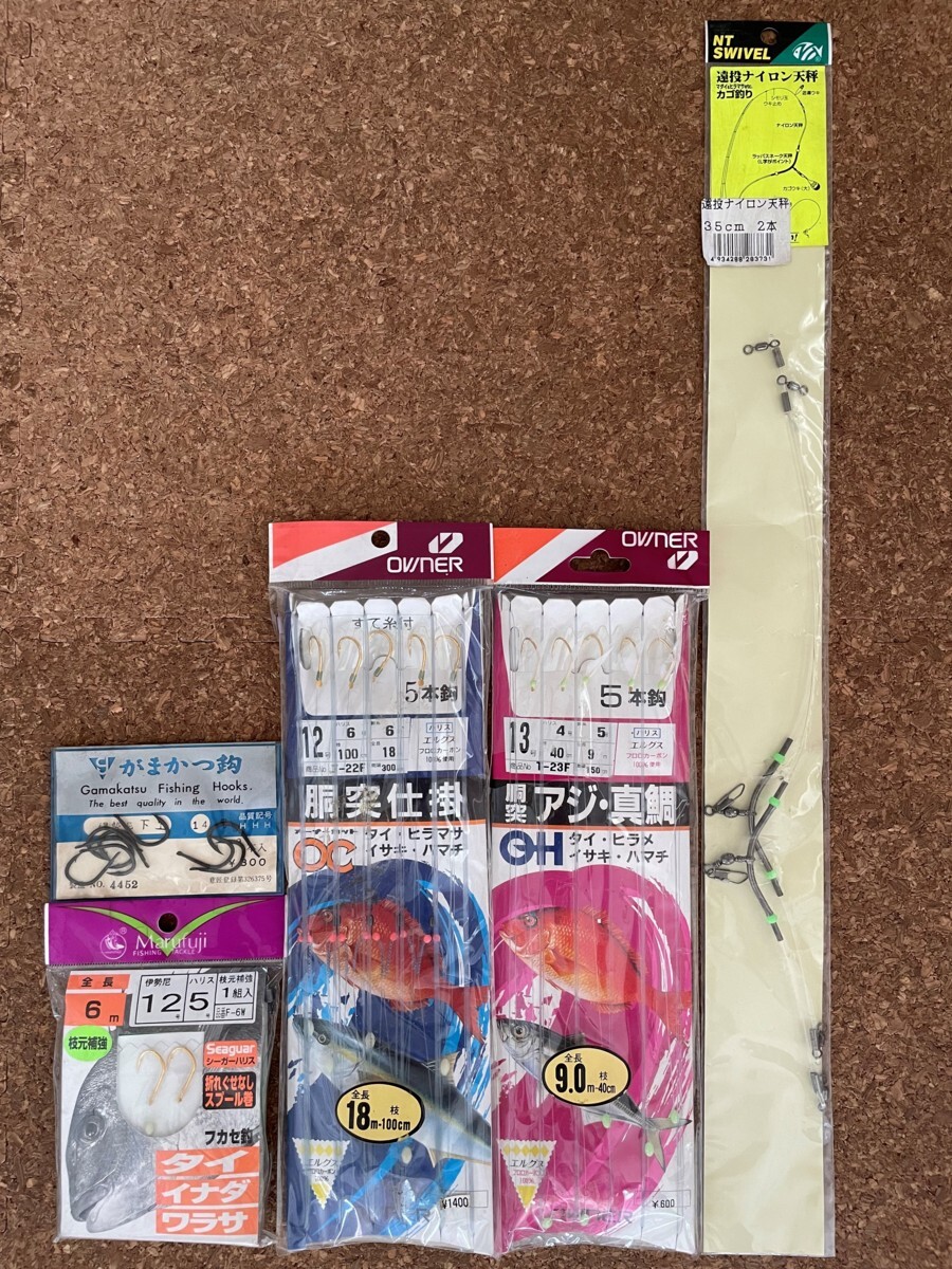 - [鯛] 伊勢尼下工 14号黒/ フカセ仕掛 12号 6m/ オーナー 胴突 12号/ アジ 真鯛 13号/ 遠投ナイロン天秤 かご釣 35cm 5種 送料無 sa-78