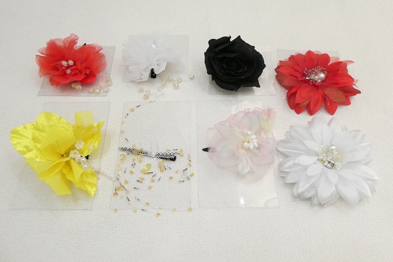 - 2511A-2070●関着/コサージュ○8点/クリップ/花柄等/髪飾りにも/(梱包サイズ:80)