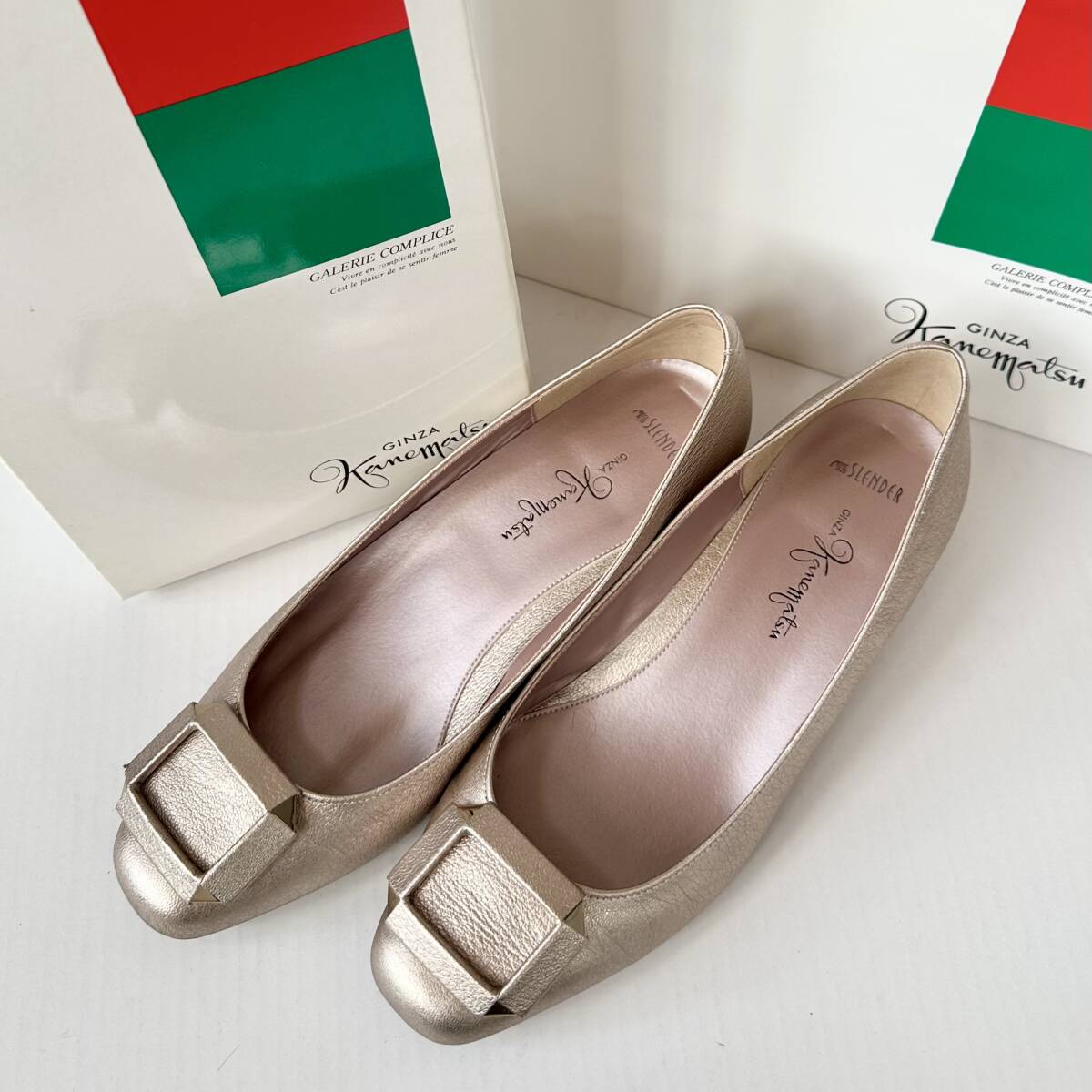 > GINZA Kanewatsu 銀座かねまつ スウェードローヒールパンプス 24cm ピンクゴールド