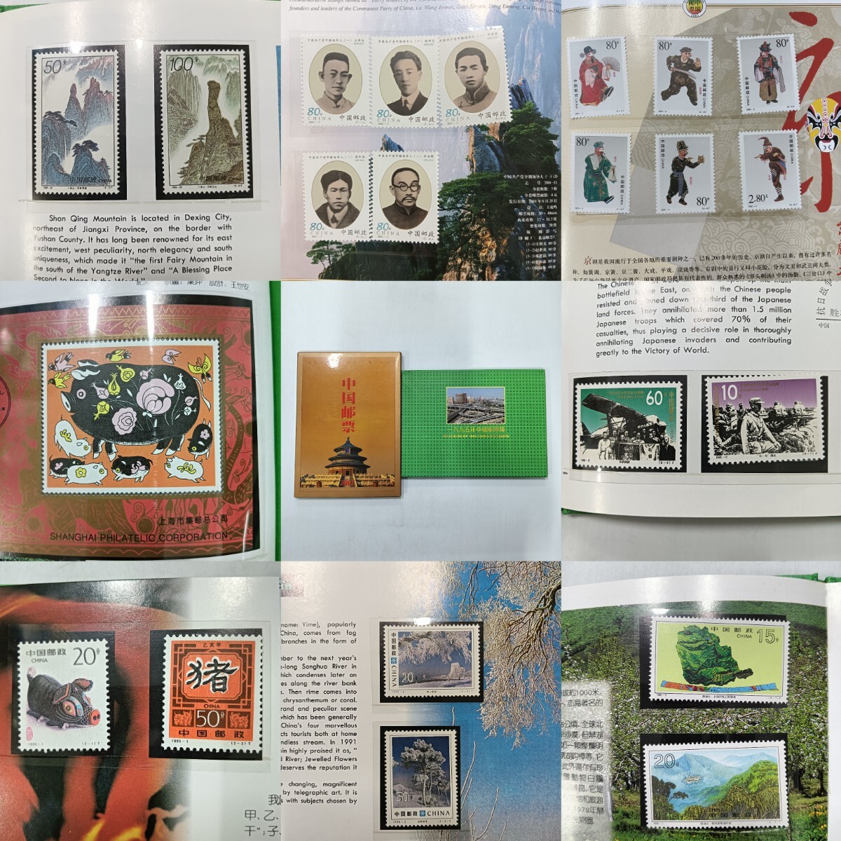 - 【W0222】1995 2001 2冊 約200枚ぐらい 中国切手 パンダ 風俗 文化 文学 風景 運動会 記念切手 海外切手 外国切手