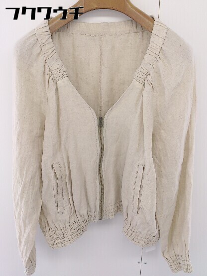 - ◇ green label relaxing UNITED ARROWS リネン100% 長袖 ノーカラージャケット ライトベージュ レディース