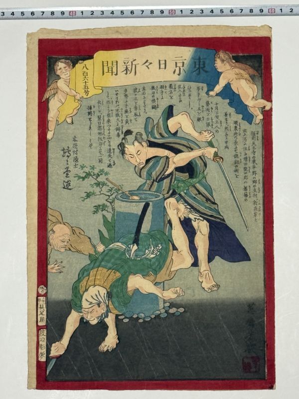 - 【真作】「東京日々新聞 865号」大判1枚 芳幾画|和本絵本本物浮世絵刷物摺物錦絵国芳摂津天王寺大阪天使住吉新在家神戸兵庫県明治