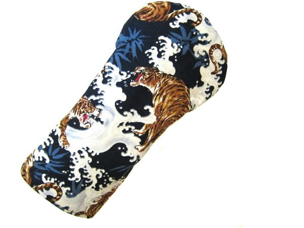 - 【ドライバー用】ゴルフ クラブ用 ヘッドカバー ドライバーカバー ハンドメイド 和風 コットン生地 紺系 虎柄 プリント 2977