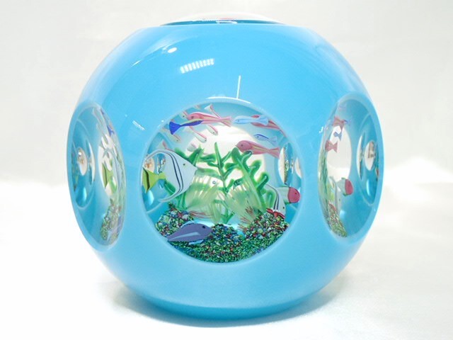 > 12013[A]希少♪【Saint Louis◆サンルイ】ペーパーウェイト 置物 2002年 限定75個 35/75 クリスタルガラス 水槽モチーフ お魚 水色系
