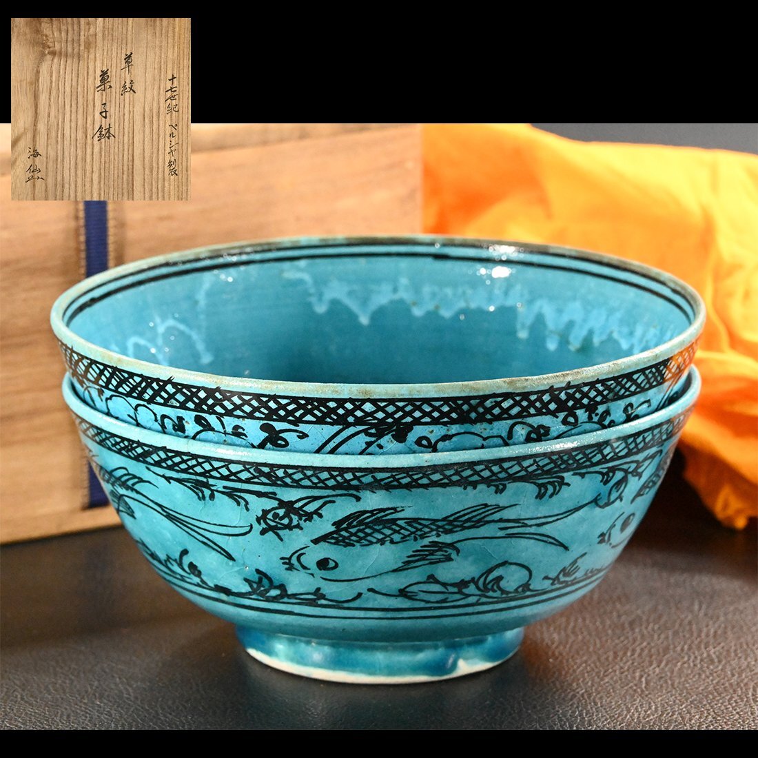 > 【永】g003【兵庫県の図書館や博物館の館長を歴任された歴史研究家遺族委託品】17世紀 ペルシャ陶磁器青釉入子鉢 井口海仙 茶道具