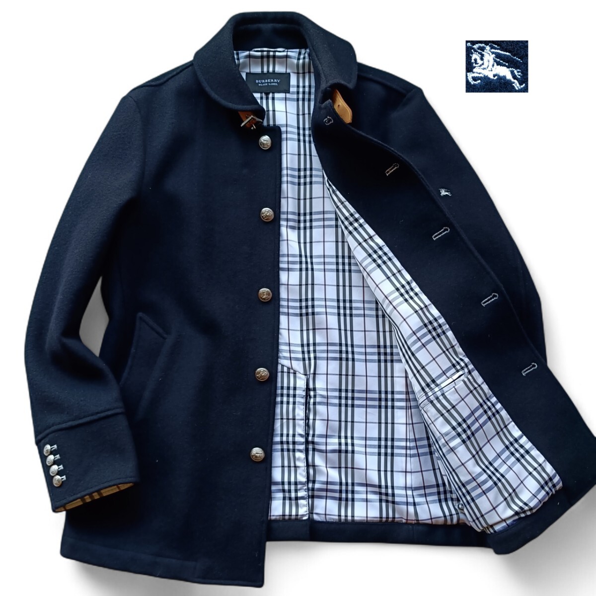 > 美品/Lサイズ/銀ボタン/ノバチェック◎バーバリーブラックレーベル 名作マリンコート ホースロゴ ジャケット 羊毛 BURBERRY BLACKLABEL