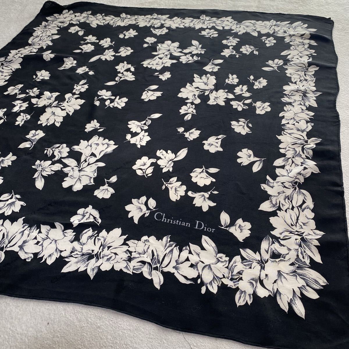 > 3点送料無料☆ christian dior クリスチャンディオール vintage scarf ビンテージ シルクスカーフ シルク100 黒 花柄 大判
