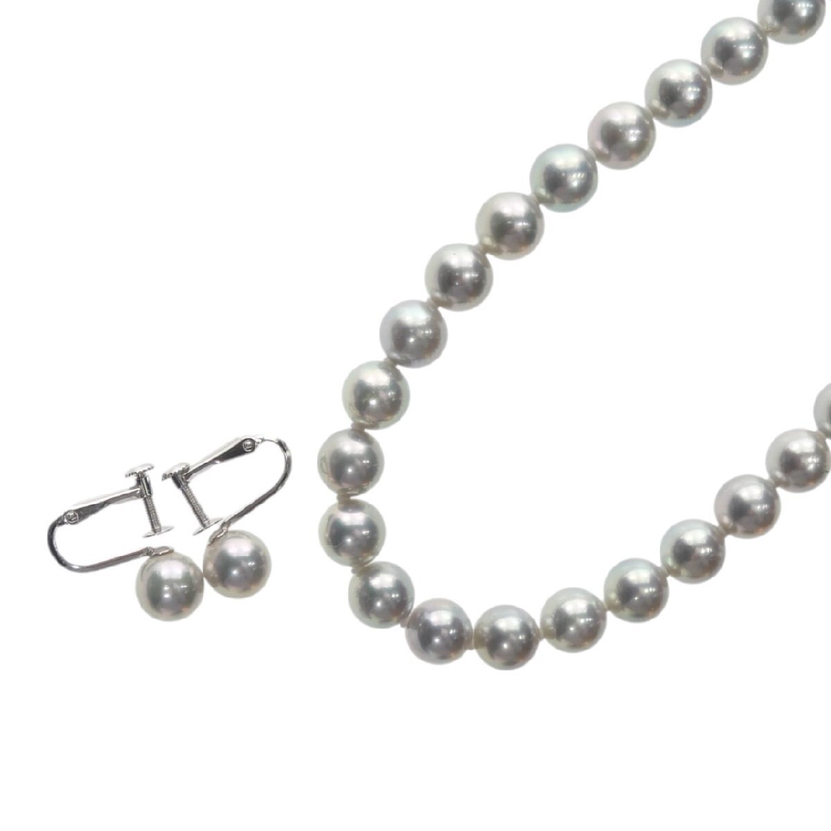 - 1円スタート 美品 アコヤ真珠 ネックレス イヤリングセット K14WG 585 ホワイトゴールド SILVER シルバー 金具 留め具 レディース 鑑別書