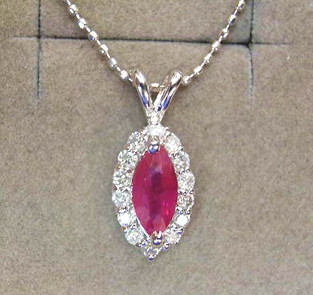 > ♪天然【ルビー】0.55c・K18WG・ダイヤ0.19c・Pt850:45cmフリー:消費税&送料込み・新品・未使用・本物