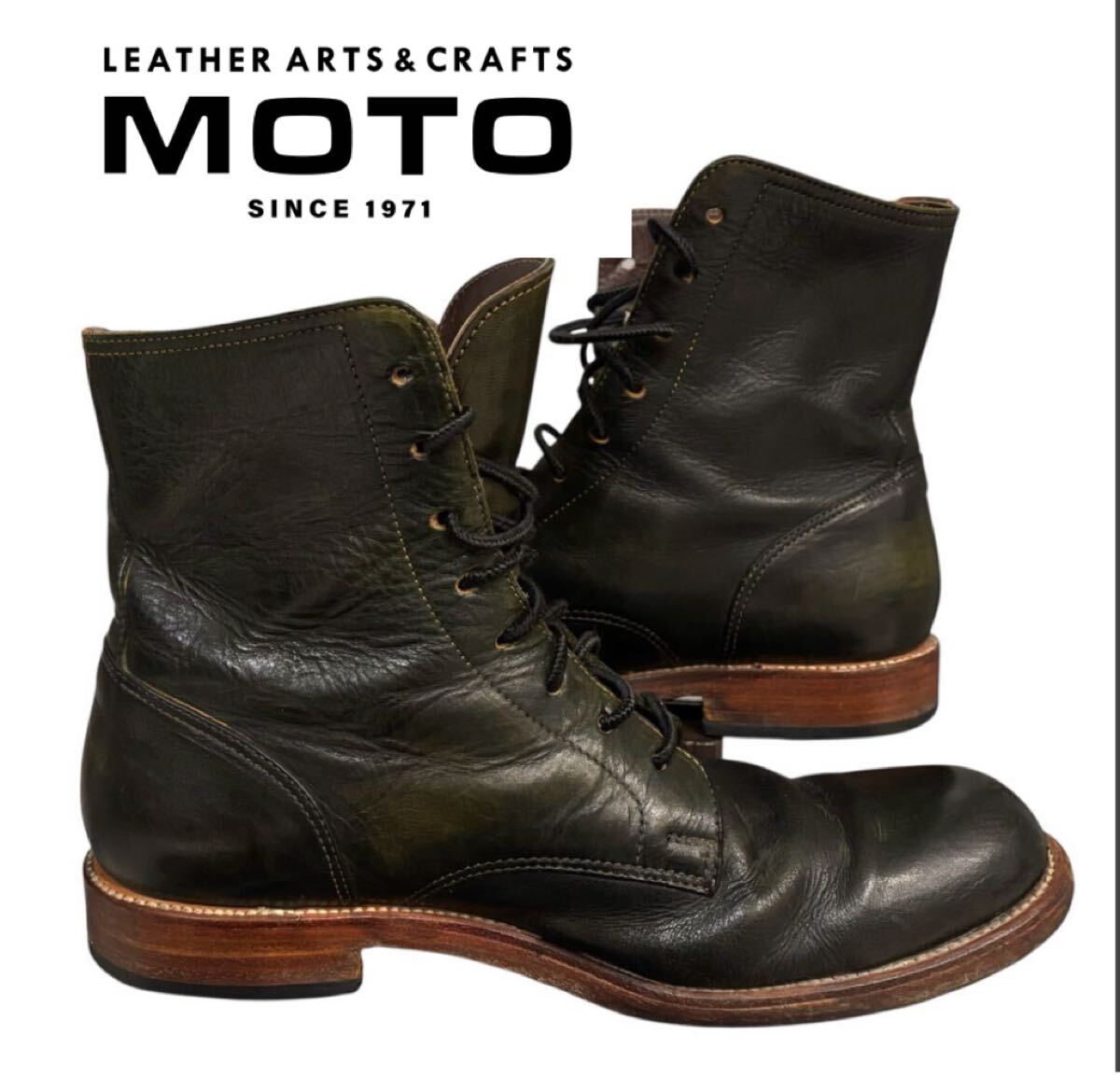 > MOTO 1100 PLAIN TOE LACE UP BOOTS / モト 手染め 牛革 カーフ プレーントゥ レザーソール レースアップブーツ メンズ