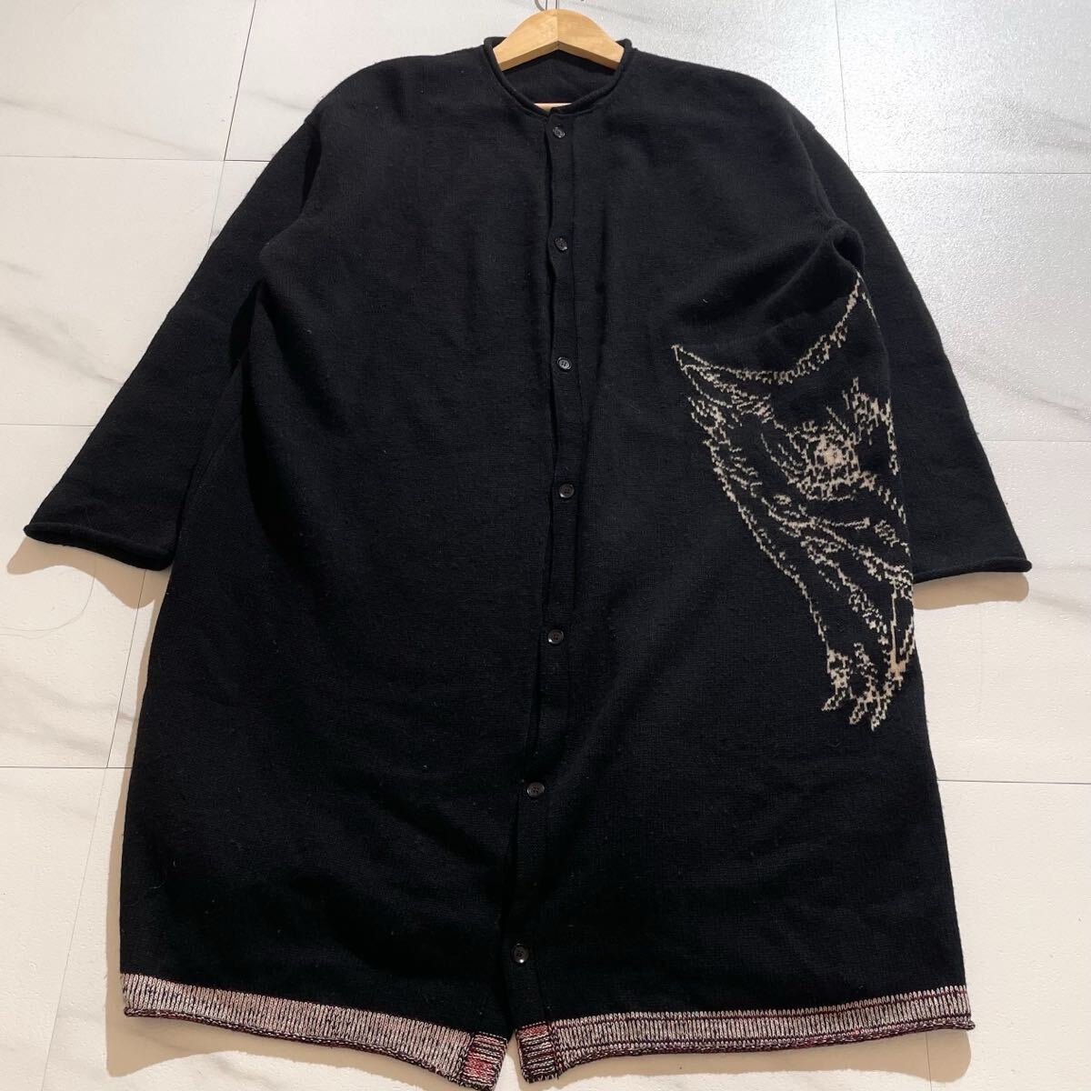 > 極美品◆Yohji Yamamoto ニットコート カーディガン ノーカラー ロング アート L相当 ビッグシルエット レディース メンズ ヨウジヤマモト