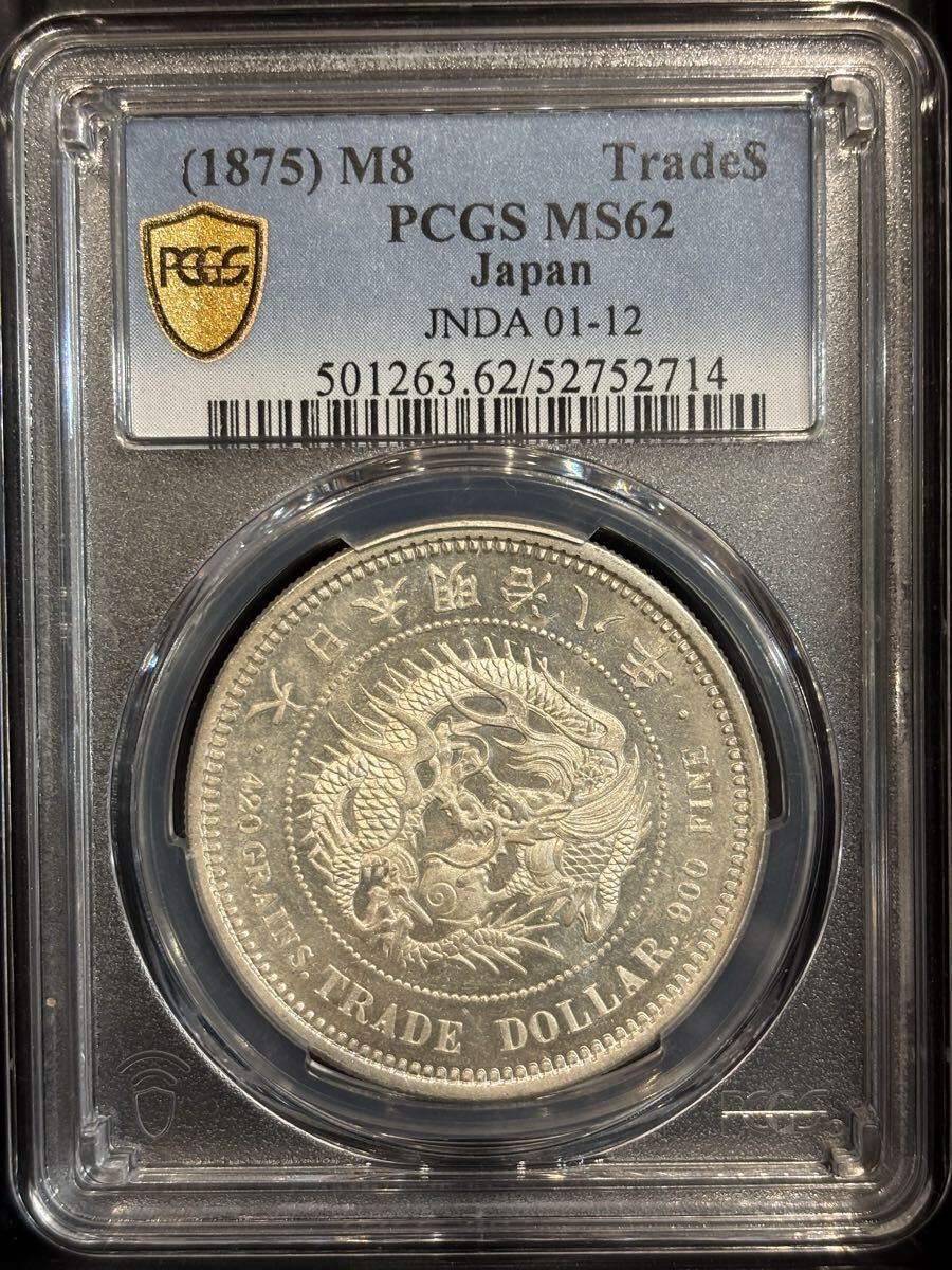 - 1875年 明治8年 貿易銀 銀貨 古銭 PCGS鑑定済み MS62