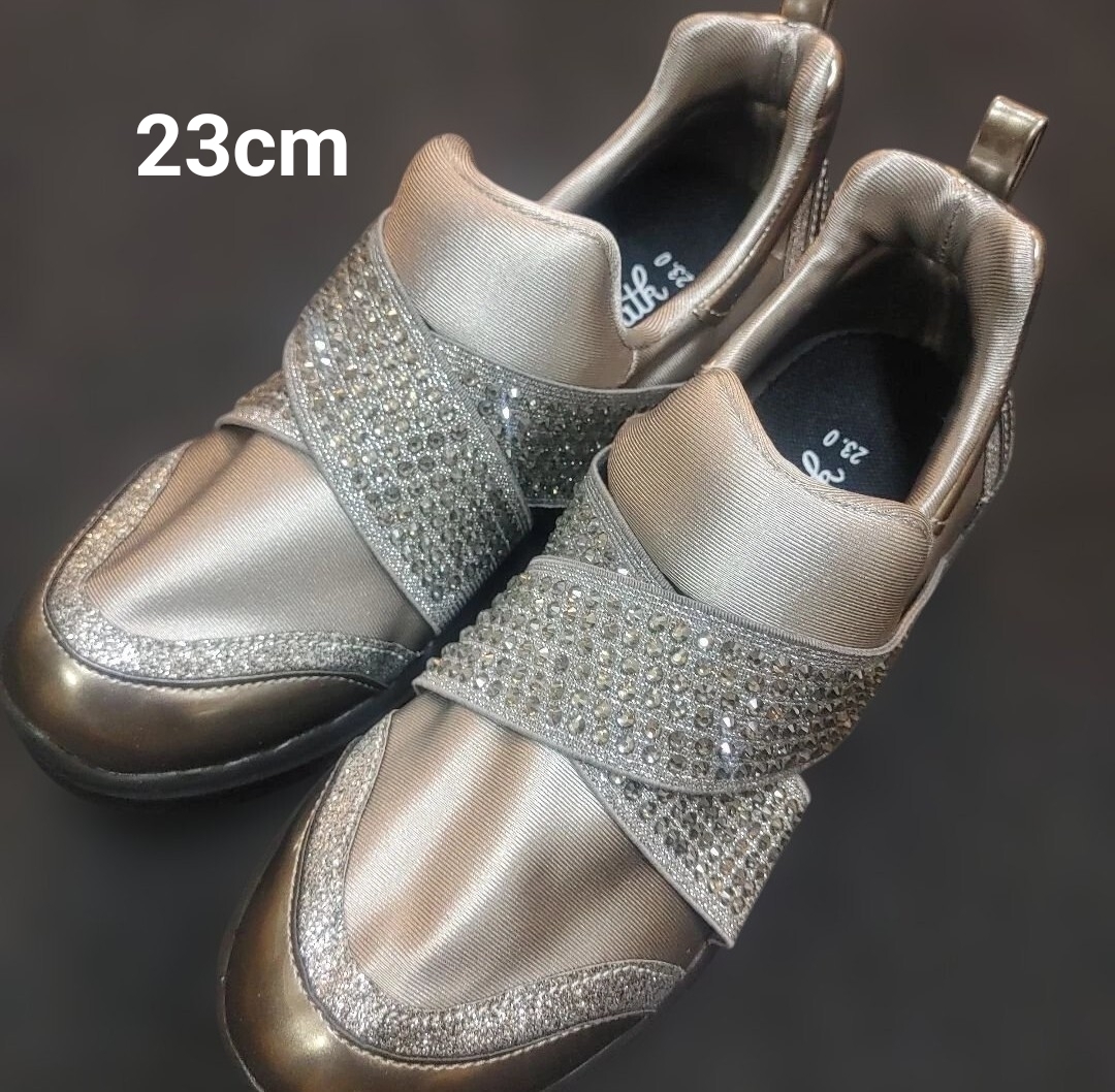 > まるで裸足感覚! 美ウォーキングに導く ヌーディウォーク スニーカー ストレッチ ビジュークロスベルト シューズ シルバー 23cm