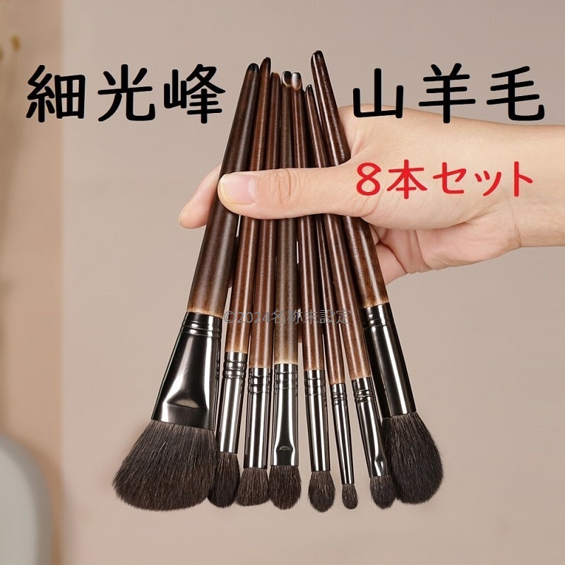 - 山羊毛 細光峰 メイクブラシ 8本 セット 化粧筆 ヤギ毛 ファンデーションブラシ チークブラシ フェイスブラシ アイシャドウブラシ 熊野筆