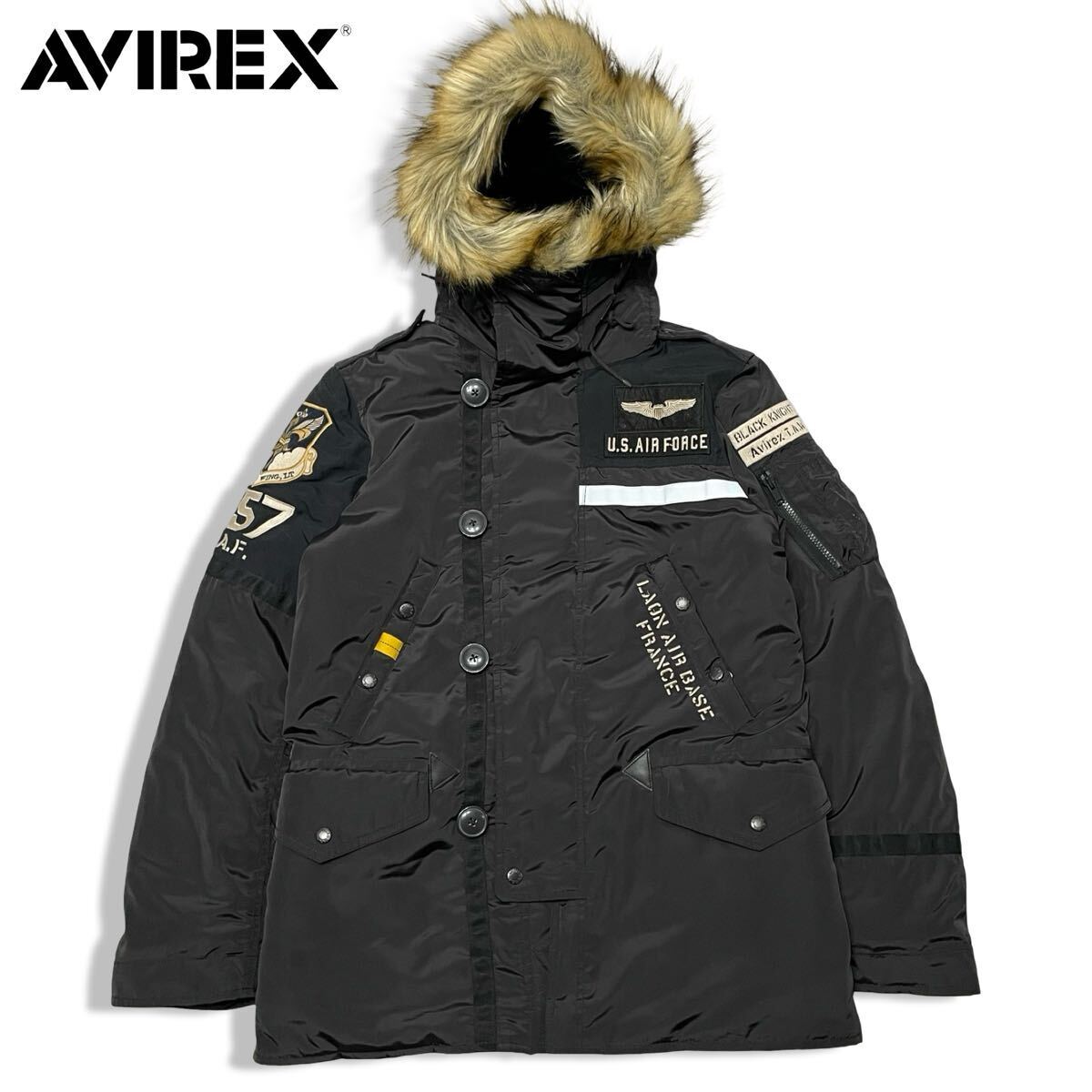 - 35 正規品 AVIREX アヴィレックス N-3B BLACK KNIGHTS 限定モデル ナイロン ダウンジャケット ロゴワッペン オリージップ M ブラック