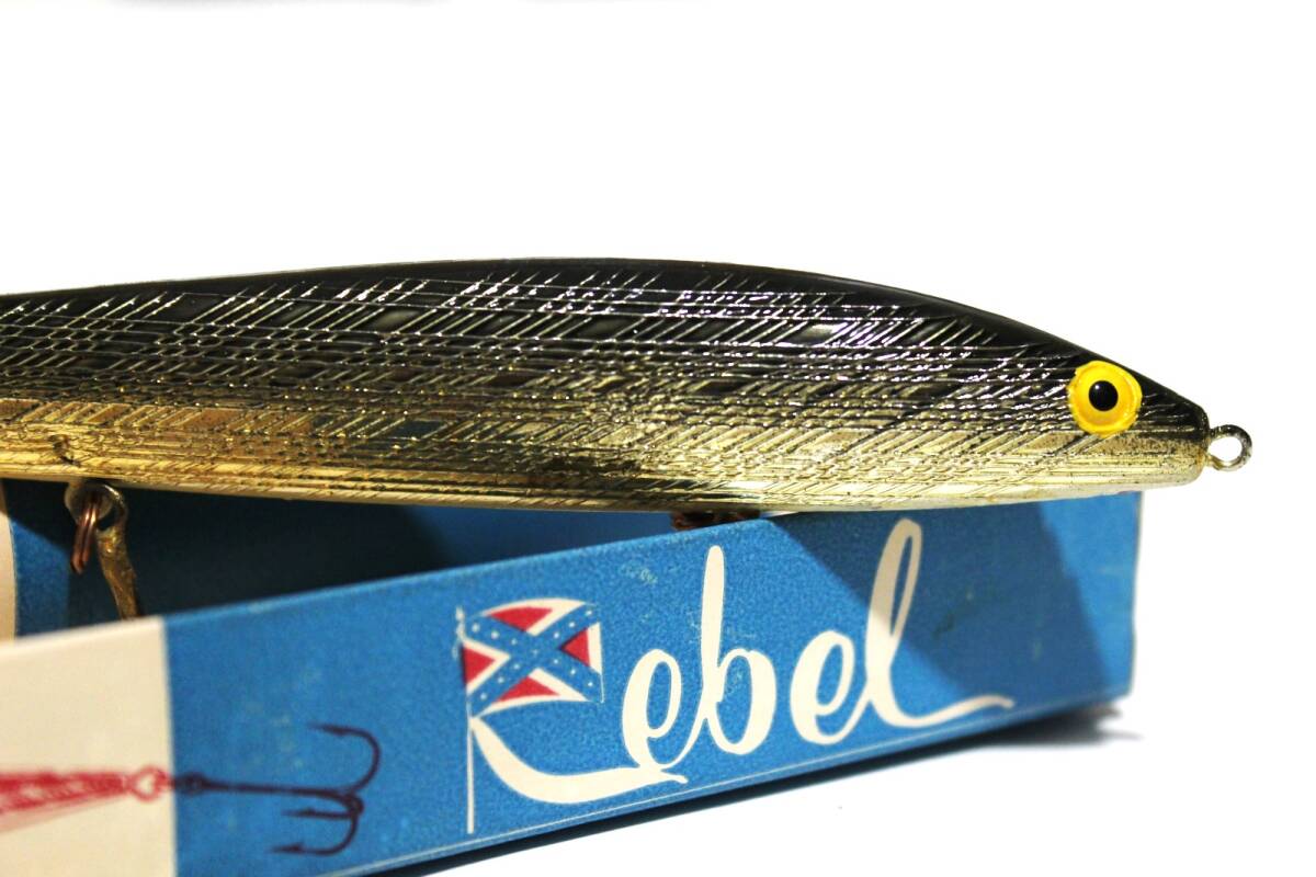 - ■s4795 REBEL spinner minner レーベル リップレスプロップミノー フローティング 希少 オールド 初期 ボックス入り 70s 140mm ■