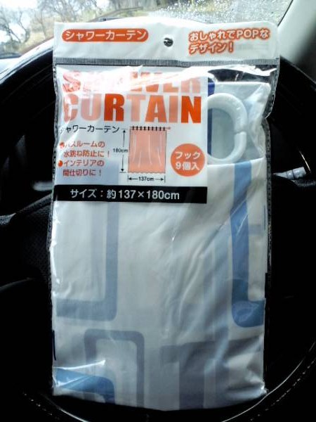 - 超素敵☆シャワーカーテン☆フック9個付☆ポップ柄☆ブルー系☆