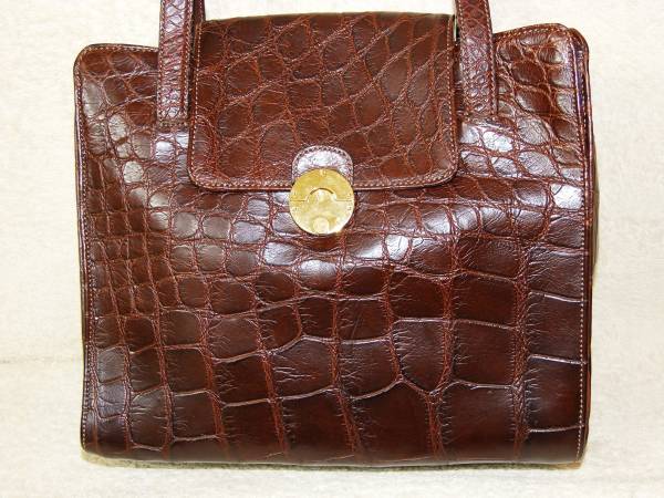 - 美品本物!イタリア製 鰐革 マットクロコ 茶