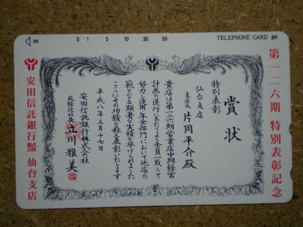 - kiny・安田信託銀行 仙台支店 126期 表彰状 テレカ