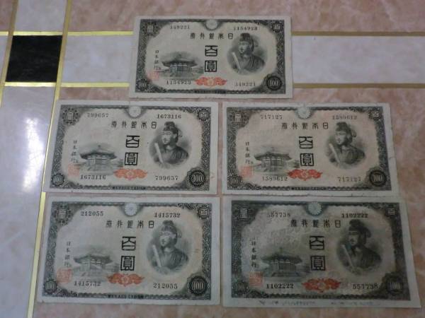 - ★ 日本銀行券A号100円 4次100円 5枚セット ★ No.53