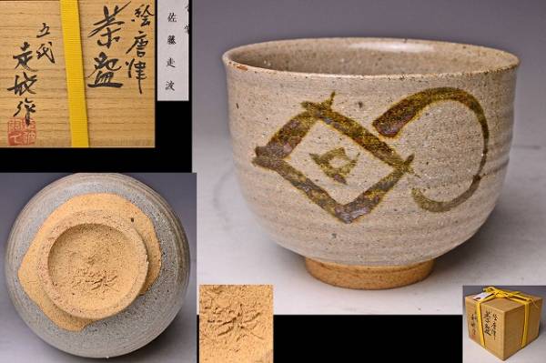 - 佐藤走波 ★ 絵唐津茶碗 ★ 共箱栞 ★ 名工 ★ 検 臼井走波 佐賀 鍋島 茶道具