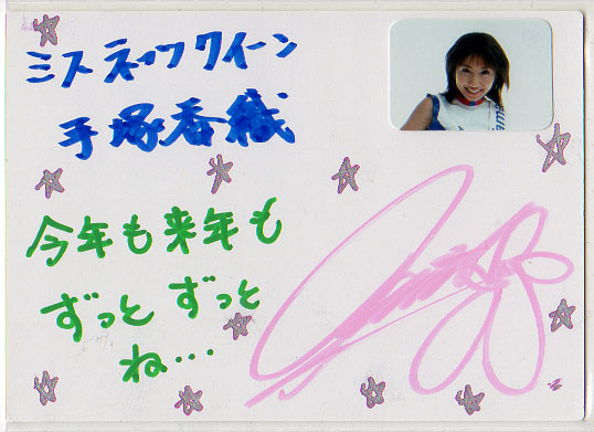 > SRQ02プレミアム 手塚香織 プリクラ直筆サインメッセージカード
