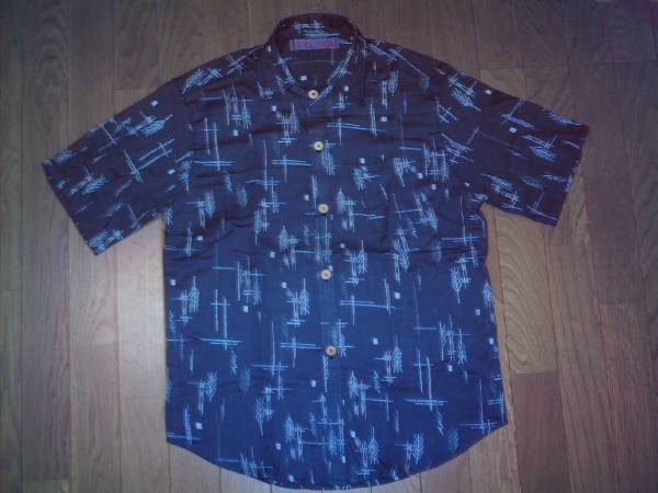 - ☆手作り☆ 和柄着物地半袖シャツ 青緑 M 新品 送無料あり