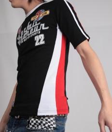 - 匿名配送 送料無料 新品 Barfait アメカジ系 袖長め半袖 メンズ Tシャツ レーサー風 黒 M 星条旗カラー アメリカン おしゃれ